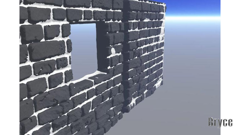 This tutorial will show you how to make realistic walls in Bryce. It should also work with other programs making use of displaced terrains, such as Vue..